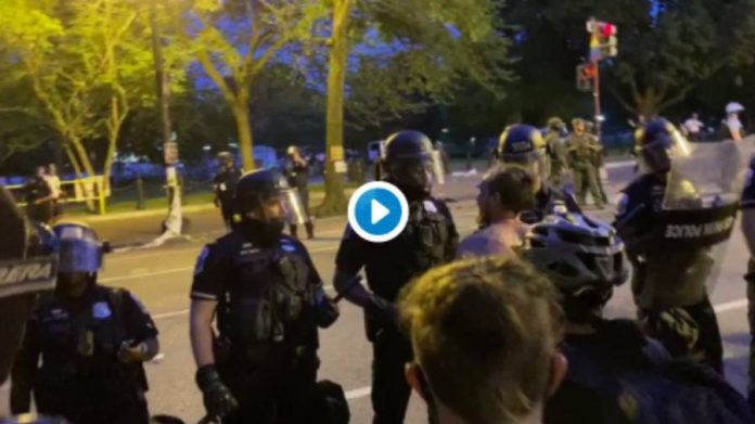 A protester got pushed to the ground by D.C. Police after putting his hands on an officer, according to an eyewitness. The protester got in the officer’s face and ranted at him. pic.twitter.com/ycbrAue1w8