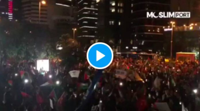 Ici à Istanbul, ils protestent devant le consulat israélien d’Istanbul. Ils souhaitent que les soldats Turcs se rendent à Gaza en Palestine pic.twitter.com/JIUIqn9eDG
