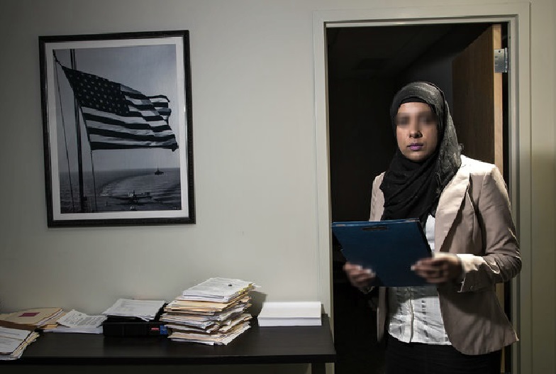 « Chaque fois que je rentre dans la salle, la première pensée c’est : Il y a une musulmane » a déclaré Zahra, 25 ans, américaine d’origine pakistanaise, décrivant le moment où elle a rencontré cet employeur potentiel qui soutient une affaire au tribunal. « Je crains que le hijab dissimule toutes mes autres compétences . »