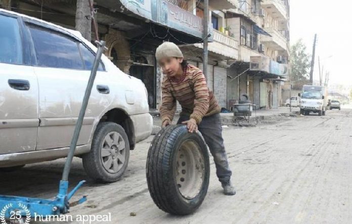 Mohamed ne s’était jamais imaginé devenir celui qui subvient aux besoins de sa famille à seulement 12 ans. Mais il n’a pas eu le choix. Il travaille toute la journée à Alep, à changer des pneus de voiture. Il gagne juste ce qu’il faut pour subvenir aux besoins de sa mère devenue veuve et de sa jeune sœur.