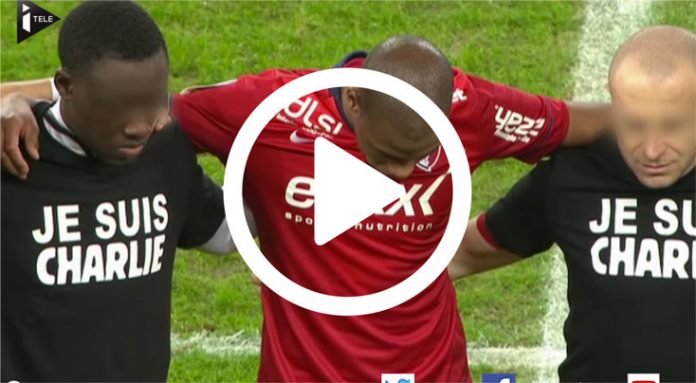 À l’initiative de la Fédération Française de Football, des joueurs de la Ligue 1 ont porté le T-shirt noir avec l’inscription “Je suis Charlie” en solidarité avec les victimes de l’attentat commis à l’encontre du journal satirique Charlie Hebdo.