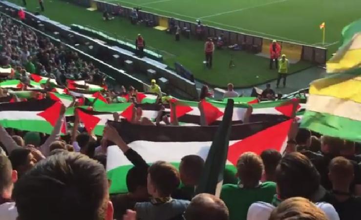Lors d’un barrage aller de la Ligue des champions opposant l’équipe du Celtic Glasgow à l’équipe israélienne de l’Hapoel Beer-Sheva, les supporters du Celtic ont brandi le drapeau palestinien à l’initiative des “Celtic fans for Palestine”, un groupe de supporters du club écossais qui avait appelé les supporters du club à « hisser le drapeau de la Palestine pour le Celtic et pour la Justice ».