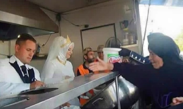 Hatice Avci, l’un des porte-parole de l’association Kimse Yok Mu sous l’égide de laquelle les mariés ont distribué leur festin, a déclaré à i100.co.uk (The Independent) que l’ONG était normalement responsable de la distribution de denrées alimentaires aux réfugiés dans le camp en question mais que ce jour-là, les mariés avaient décidé de donner leur propre nourriture !