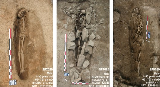 Grâce à une analyse paléogénétique réalisée dans un laboratoire à Bordeaux, les chercheurs ont déduit que les individus seraient nord-africains, « du moins en ce qui concerne leur lignée paternelle ». Les chercheurs ont ainsi émis l’hypothèse qu’il puisse s’agir de soldats berbères combattants dans l’armée omeyyade pendant l’expansion arabe en Afrique du Nord. Jean-Yves Breuil, archéologue à l’Inrap, a précisé qu’il s’agirait des « premiers groupes musulmans arrivés en Europe », dans le cadre de la conquête.