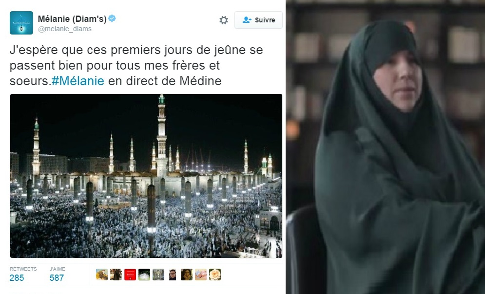 « J’espère que ces premiers jours de jeûne se passent bien pour tous mes frères et sœurs. #Mélanie en direct de Médine »; a-t-elle tweetté.