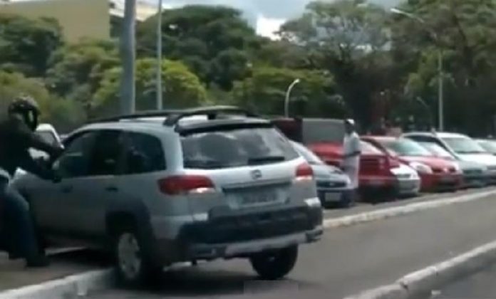 Elle redémarre ensuite brusquement pour tenter une nouvelle fois de me foncer dessus. Je m’écarte, je saisis un bac à ordures ménagères et je le jette devant sa voiture pour tenter de lui bloquer la route. Elle s’arrête ensuite et redémarre de nouveau pour essayer de m’écraser. Elle reprend ensuite la route et disparaît.