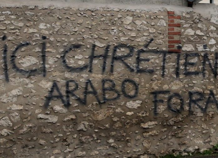 Les jours passent et se ressemblent pour la communauté musulmane, décidément très convoitée en ces temps. Une nouvelle mosquée vient de faire l’honneur des islamophobes du coin. La mosquée de la rue de la Mare à Blois s’est vue souillée par des tags racistes. Hier matin entre 7h30 et 10h, les inscriptions « Ici chrétien, arabo fora (arabes dehors) » sont apparues sur le mur de l’enceinte.
