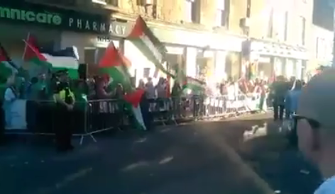 Le groupe BDS Ecossais a manifesté contre l’occupant israélien en Palestine et en particulier à l’encontre des « crimes de guerre » et des « crimes contre l’humanité » commis par les sionistes.