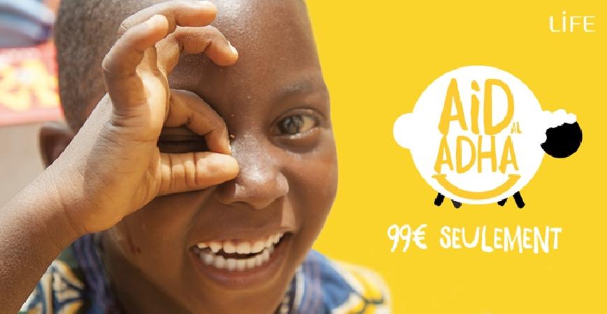 C’est pourquoi nous renouvelons l’opération : « Aïd al Adha, offrez un sourire, offrez un sacrifice ! ». Pour 99€ seulement, LIFE offre la possibilité de faire son sacrifice par procuration. Ensemble, faisons de ce Aïd, un Aïd exceptionnel pour toutes les personnes qui comme nous souhaitent profiter de cette fête mais qui n’ont pas la possibilité de la célébrer. Ensemble, donnons le sourire à ces milliers de femmes, d’hommes et d’enfants qui n’attendent qu’une chose célébrer cette fête comme il se doit.