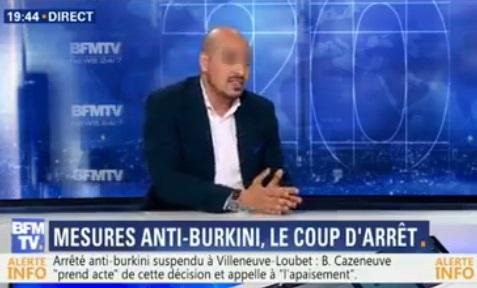 Suite à la décision du Conseil d’Etat d’invalider l’arrêté “anti-burkini” de Villeneuve-Loubet dans les Alpes-Maritimes. Marwan Muhammad (directeur exécutif du CCIF) était l’invité de BFM TV.