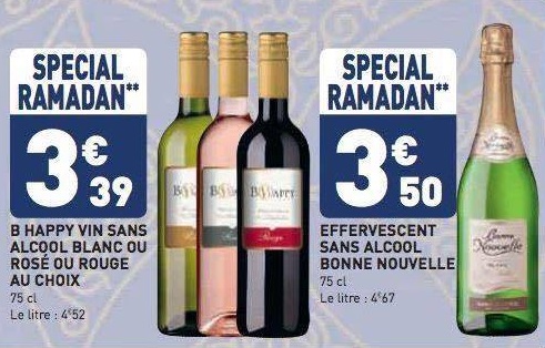 Les prospectus remplissent nos boîtes aux lettres regorgeant d’offres «halal» en tout genre, Carrefour, Leader Price tous sont là pour vous vendre de la viande “Halal”, pâtisseries orientales ou épices vous n’avez que l’embarras du choix et si vous hésitez prenez du vin «halal» sans alcool tout à fait indiqué en période de jeûne.