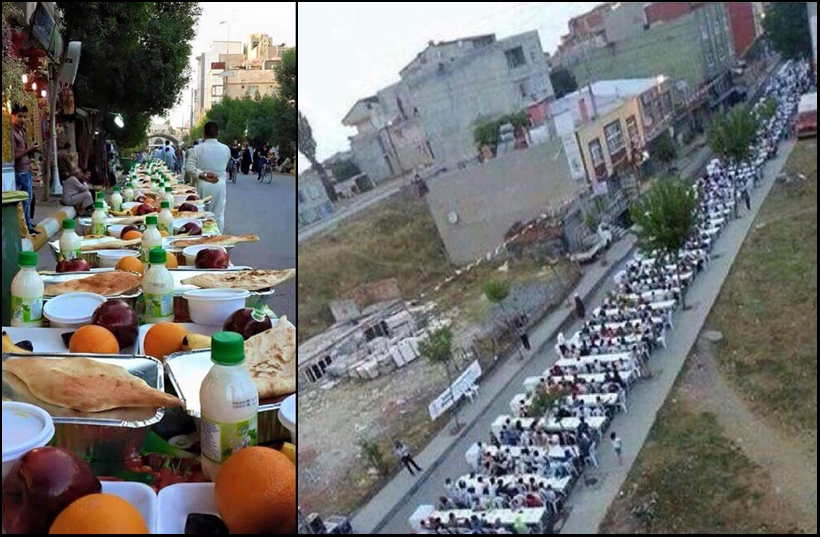 Ces photos ont été prises en Turquie, où l’on peut voir une table longue de 6 kilomètres et garnie de nombreux mets offerts aux réfugiés Syriens pour la rupture du jeûne.