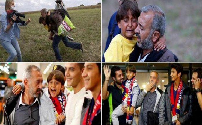 Souvenez-vous du réfugié syrien fuyant les forces de l’ordre en Hongrie, victime d’une mauvaise chute provoquée par une journaliste hongroise, alors qu’il tenait son fils dans ses bras.