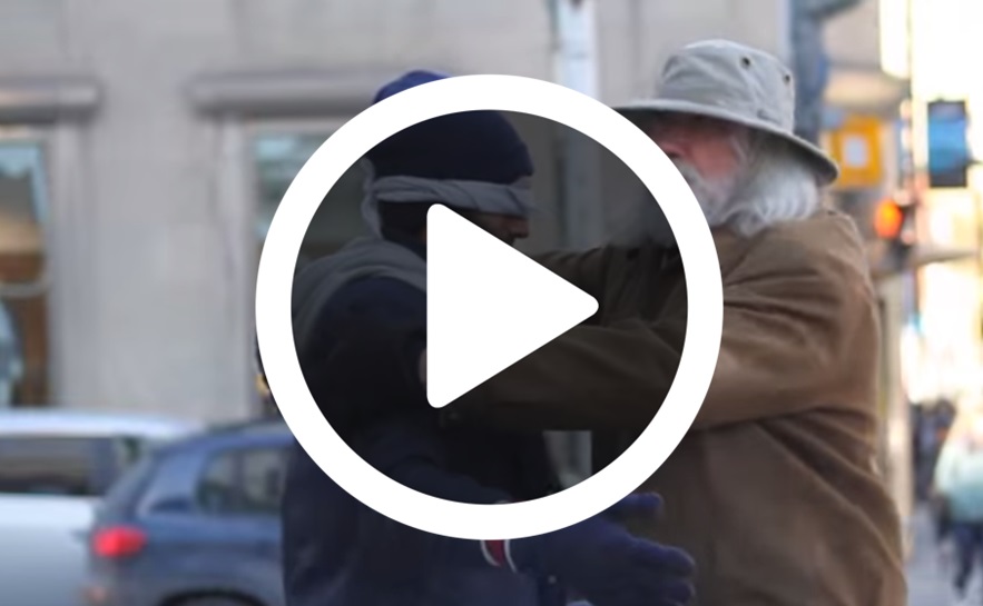 Dans ce court extrait, on y voit un jeune les yeux bandés, tendre les bras en guise d’une étreinte dans le centre-ville de Toronto. Sur les affiches placés au sol, on peut lire notamment : « J’ai confiance en vous, vous avez confiance en moi ? Prenez-moi dans vos bras. » ; « Je suis musulman. Je suis étiqueté comme un terroriste ».