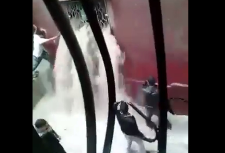 A coups de marteau, ils se sont relayés pour tenter de démolir les barreaux d’acier. Ils ont dû s’y reprendre à plusieurs reprises avant que l’un d’eux n’en vienne à bout. Dès que la fenêtre s’est ouverte, on voit plusieurs personnes rejetées avec violence par les eaux qui avaient apparemment déjà atteint plusieurs mètres.