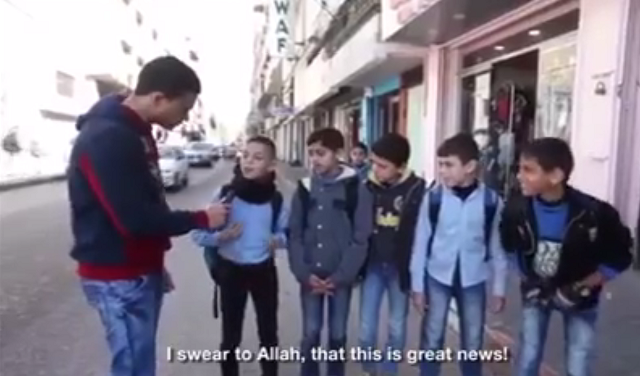 Lors d’un micro-trottoir réalisé à Gaza, un journaliste interpelle de jeunes écoliers « D’après une information, Gaza devra accueillir un million de réfugiés syriens, que pensez-vous de cette nouvelle ? » leur dit-il.