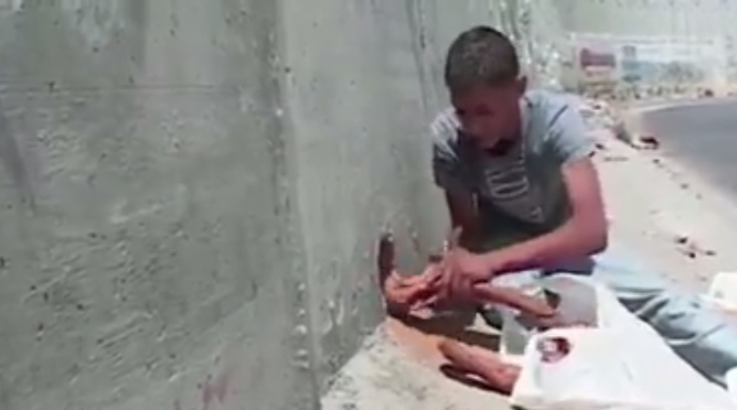 Obligés de recourir à tous les stratagèmes pour subvenir aux besoins élémentaires des leurs, les palestiniens s’organisent tant bien que mal et c’est à l’aide d’un trou de souris qu’un enfant passe du pain à un autre adolescent situé de l’autre côté du mur de séparation.