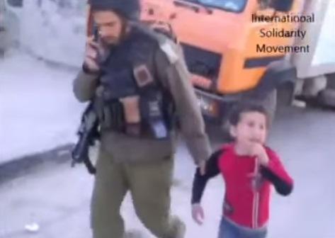 Les images suivantes montrent des soldats israéliens tirant jeune un garçon de six ans en pleurs, accusé d’avoir jeté des pierres sur les soldats israéliens