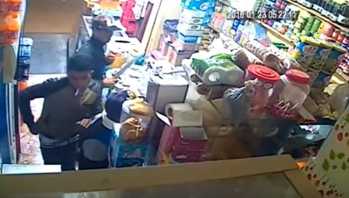 Des images tirées d’une vidéosurveillance nous montre leur mode opératoire. Dans cette séquence, trois jeunes gens, casquette enfoncée jusqu’aux yeux déboulent dans une petite épicerie d’une ville marocaine. Un faux client est occupé à faire ses achats lorsque les trois truands sortent chacun un long couteau et font mine d’agresser le chaland, qui est leur complice, avant de se retourner contre l’épicier à l’abri derrière son comptoir.