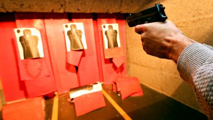 Lors de la conférence de presse le directeur adjoint de la police judiciaire de Rennes. Une autre arme du même type, appartenant elle aussi à Karl F., par ailleurs titulaire d’une licence de tir dans un club de la région lyonnaise, a été retrouvée lors de perquisitions.