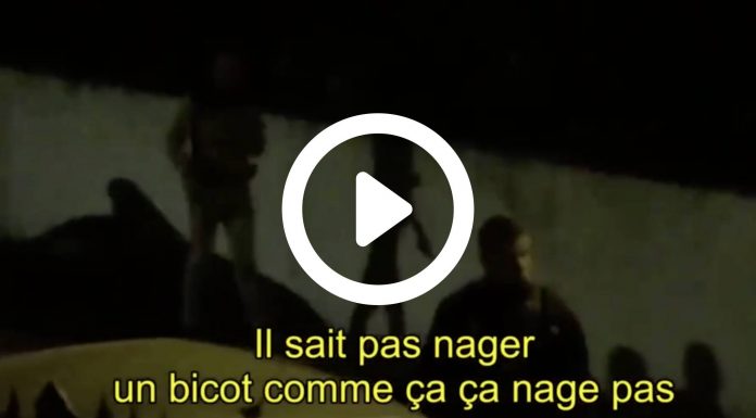 Les policiers visiblement nostalgiques de l’époque où la police noyait des Algériens dans la Seine, plaisantent :