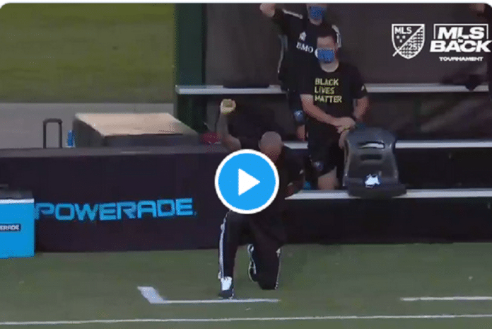 Lors d’un match opposant son équipe l’Impact Montréal à celle de New England Revolution, l’entraîneur Thierry Henry a posé le genou à terre en soutien au mouvement Black Lives Matter. Et ce, pendant plus de 8 minutes.