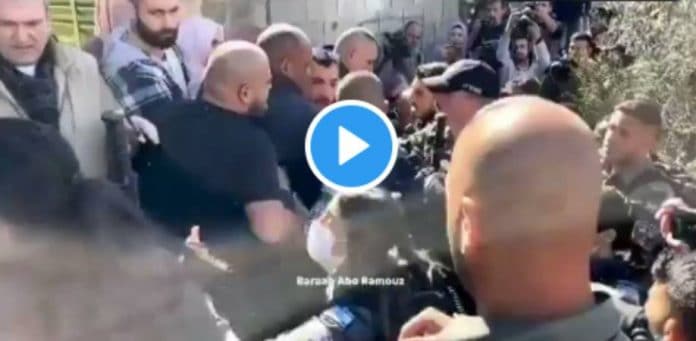 Les colons se sont battus avec les habitants et ont utilisé du gaz poivré, tandis que des chaises étaient lancées des deux côtés, avant que la police israélienne n’intervienne pour repousser les foules palestiniennes.