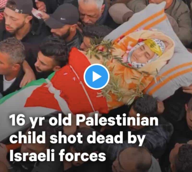 Mustafa Sabbah, un enfant palestinien de 16 ans abattu par les forces d’occupation israéliennes près de Bethléem en Cisjordanie.
