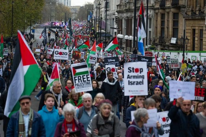 À Londres, plus de 125 000 personnes ont participé à une 21ᵉ manifestation nationale consécutive en soutien à la Palestine.