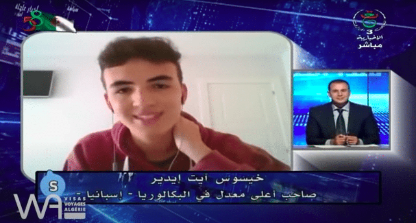 Dans une interview accordée à l’ENTV, Jesús Mohand-Salah Aït Idir, le jeune bachelier âgé tout juste de 16 ans, de père algérien et de mère espagnole de Saragosse, a confié sa joie d’avoir honoré l’Algérie en obtenant la meilleure note d’Espagne.