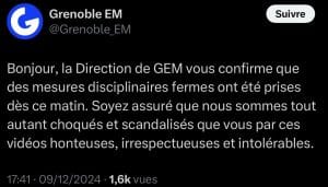 La direction de Grenoble École de Management a réagi directement :