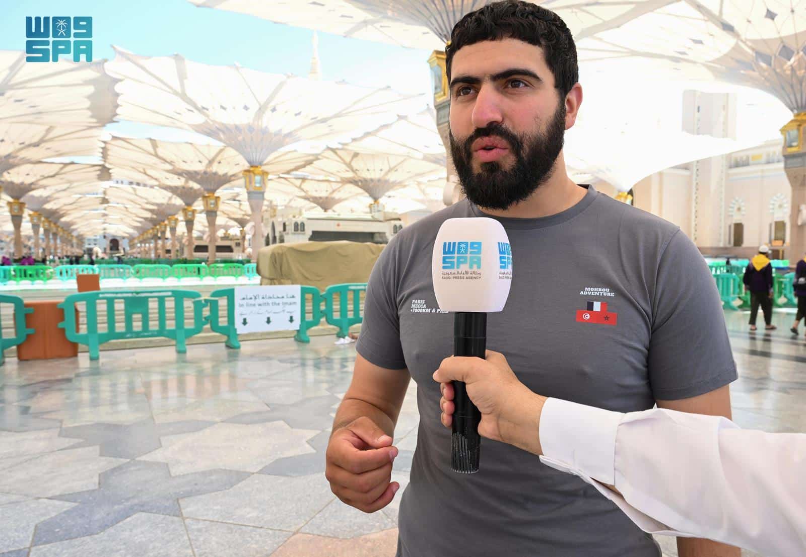 L’Agence de presse saoudienne (SPA) a rencontré Mohamed Boulabiar dans les cours de la Mosquée du Prophète le mardi, quelques heures seulement après avoir terminé son voyage à travers divers terrains et enduré de nombreuses conditions météorologiques. Malgré les difficultés et les dangers, il n’a pas été découragé de son objectif d’atteindre les lieux saints à pied.