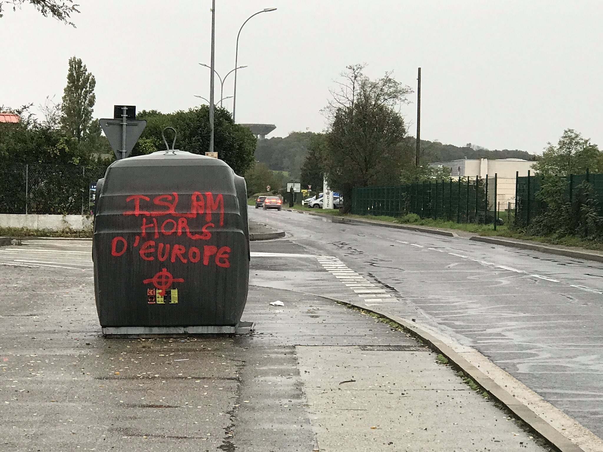 Ce message de haine a certainement été peint dans la nuit de jeudi à vendredi par l’extrême-droite très virulente dans la région. Plusieurs personnalités politiques de Meyzieu ont condamné cette islamophobie primaire d’une autre époque.