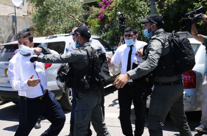 Des témoins oculaires ont déclaré avoir vu la police israélienne arrêter au moins trois Palestiniens et rapporté que dix autres avaient reçu des ordres d’enquête.