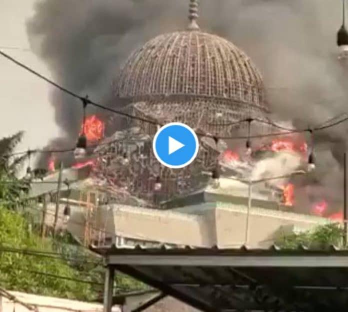 Les images de l’incident montrent le moment où le dôme géant s’est effondré après avoir été englouti par un incendie. Des images vidéo montraient des flammes et de la fumée s’échappant du dôme de la mosquée juste avant son effondrement.