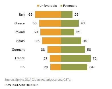 À l’approche des élections européennes, le centre américain de recherche Pew Research a menu une étude auprès de sept pays européens (France, Italie, Espagne, Allemagne, Royaume-Uni, Grèce, Pologne) afin de déterminer leur perception des minorités.
