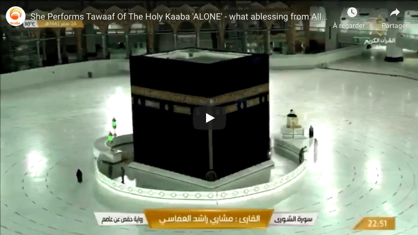 Une vidéo rare et précieuse montre une femme qui a eu l’honneur d’exécuter le Tawaf – circumambulation – seule autour de la Sainte Kaaba construite par nos bien-aimés Ibrahim et Ismaïl (que la Paix soit sur eux).