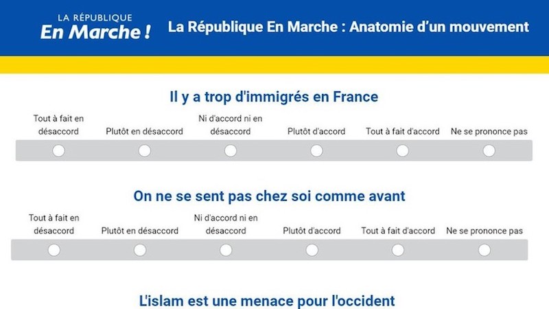 Les sympathisants et militants de La République en marche étaient invités à se positionner sur cette affirmation quelque peu surprenante :