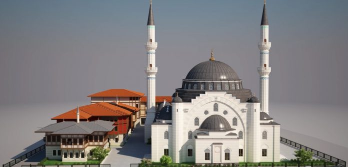 La partie mosquée de style traditionnel ottoman disposera de deux grands minarets (d’une quarantaine de mètres de hauteur), un grand dôme de 26 mètres de hauteur et 27 autres dômes plus petits.