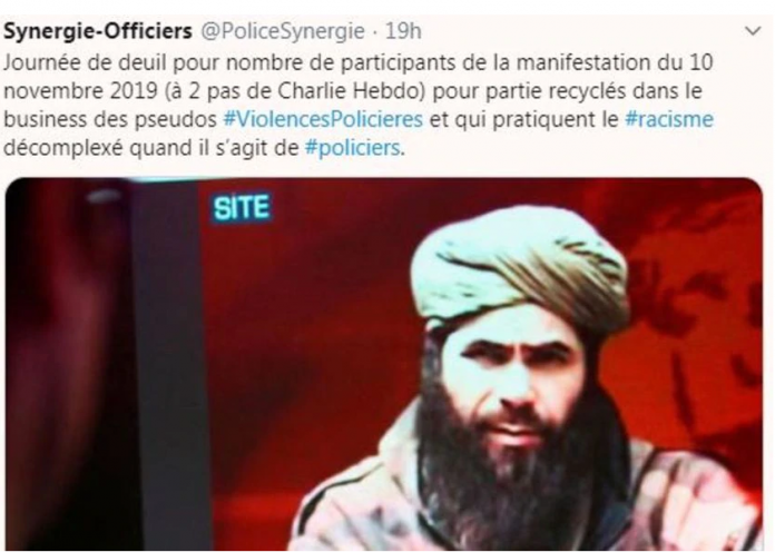 «Journée de deuil pour nombre de participants de la manifestation du 10 novembre 2019 (à deux pas de Charlie Hebdo) pour partie recyclés dans le business des pseudos #ViolencesPolicieres et qui pratiquent le #racisme décomplexé quand il s’agit de #policiers.»