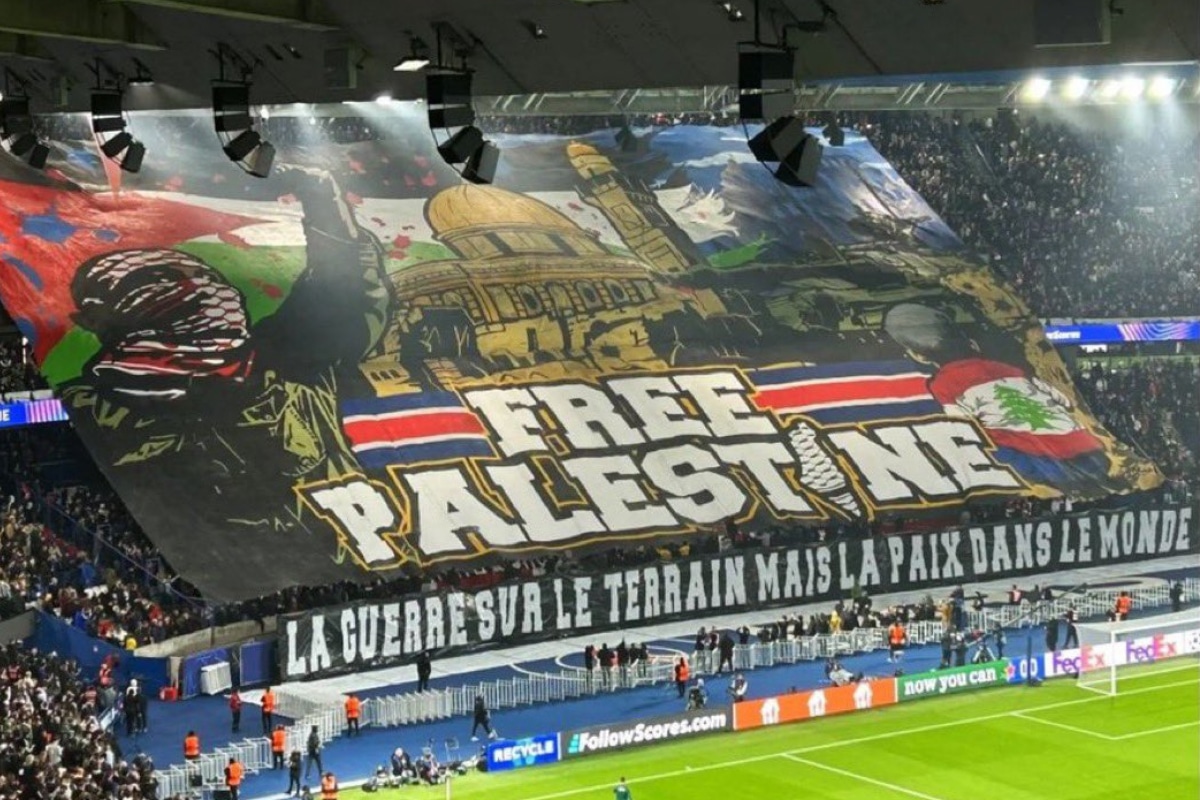 Mercredi soir, des supporters du groupe Auteuil Kop du Paris Saint-Germain ont déployé une grande banderole « Palestine libre » avant leur match de Ligue des champions contre l’Atletico Madrid, huit jours avant que la France n’affronte l’État occupant d’Israël à Paris dans un match de la Ligue des Nations. Sous la banderole, une autre banderole indiquait : « guerre sur le terrain mais paix dans le monde ».