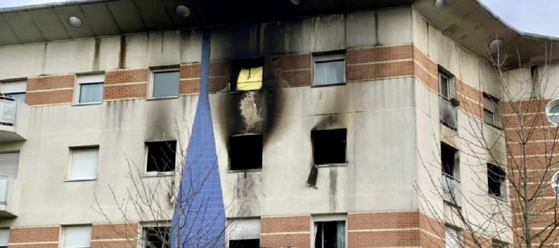 L’incendie a été particulièrement violent puisque la façade du bâtiment dans lequel se trouve l’appartement incendié est recouvert de noir. Quant à ce dernier, il a entièrement brûlé, il ne reste plus rien.
