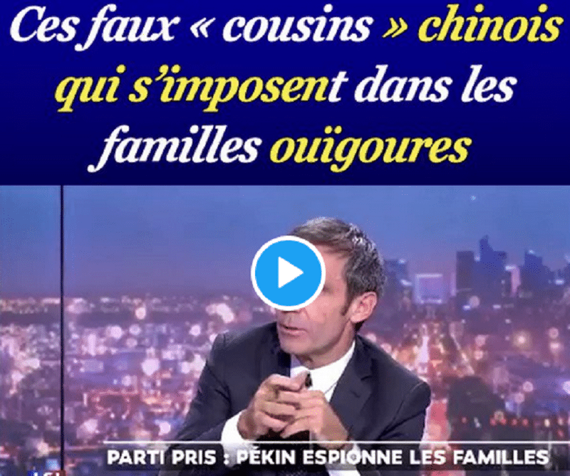 « Concrètement, chaque famille a un ou plusieurs cousins chinois. SI le foyer Ouïghour se compose de cinq personnes, un couple et trois enfants par exemple, il y a cinq cousins qui débarquent. Tout ça pour surveiller s’il y a des DVD de séries turques, signe de radicalisation. Ou s’il n’y a pas un Coran planqué quelque part. »