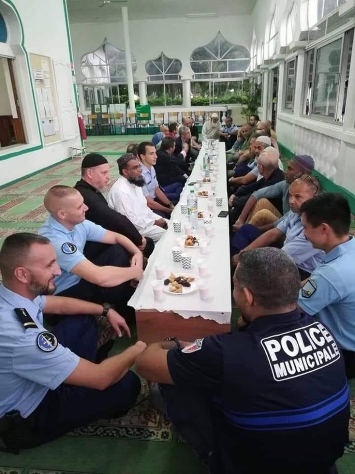 Cette photo a fait le buzz sur les réseaux sociaux, sur laquelle on voit des gendarmes et policiers attablés dans une mosquée pendant le Ramadan à l’heure de la rupture du jeûne. France Info a mené l’enquête pour remonter l’origine de cette scène malheureusement insolite.