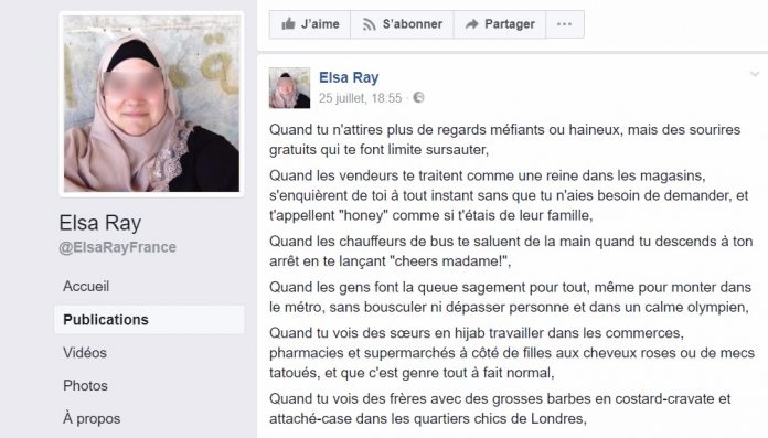Sur sa page Facebook, Elsa Ray l’ancienne porte-parole du Collectif contre l’Islamophobie en France (CCIF) et femme engagée, a mis en exergue de sa plume aux accents poétiques, la différence qui existe entre le quotidien d’un français et d’un britannique tous deux de confession musulmane.