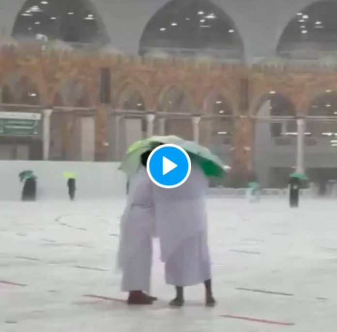 Des vidéos circulant sur les réseaux sociaux mardi ont montré de fortes pluies inhabituelles et de la grêle dans la grande mosquée de la ville sainte de La Mecque, en Arabie saoudite.