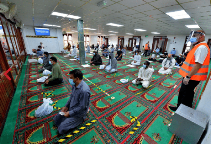 Ainsi, les fidèles de la mosquée Aïcha doivent porter obligatoirement le masque et suivre un sens unique de circulation tout en respectant les mesures de distanciation sociale. Ensuite, on leur donne un tapis de prière jetable ainsi qu’un sac plastique pour ranger leurs chaussures. Des gels antibactériens sont placés à divers endroits de la mosquée et l’accès aux toilettes et à l’endroit des ablutions est interdit.