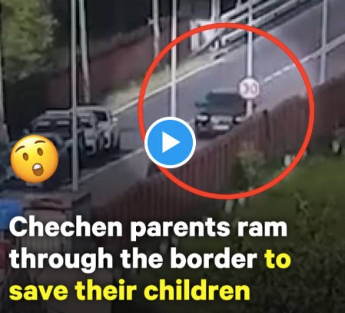 CCTV footage shows a daring attempt by Chechen Muslim parents as they rammed the barriers at the Belarus border to save their children from Swedish social services.