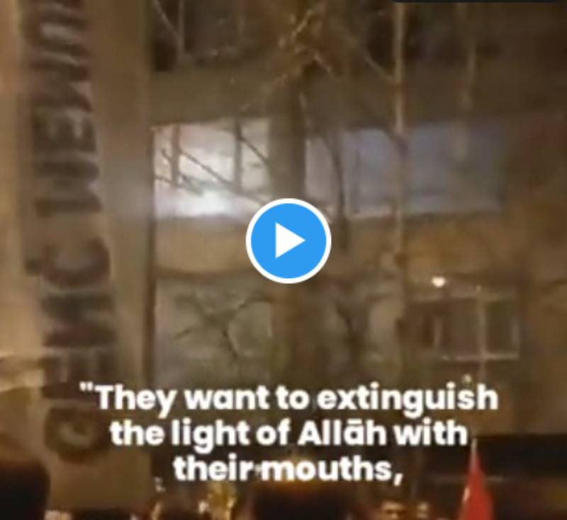 A copy of the Quran was burned outside the Turkish embassy in Sweden. In response, the following verses were recited outside the Swedish embassy in Turkey.