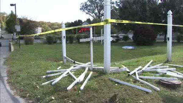 A l’aide des bouts de bois récupérés de la clôture, les malfrats ont réalisé une croix avec de la ficelle (cf. Photo).